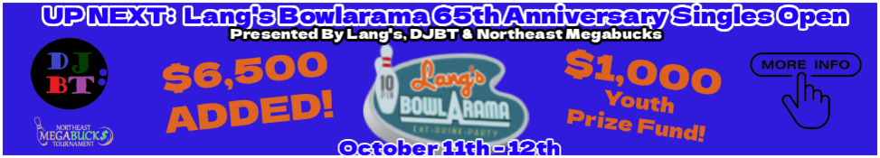 Lang's Bowlerama 65th Anniversary Singles Open presented by Lang's, DJBT & Northeast Megabucks - $7,500 added to the prize fund ($6,500 main event and $1,000 to Youth prize fund) - 3rd Survivor VH Memorial